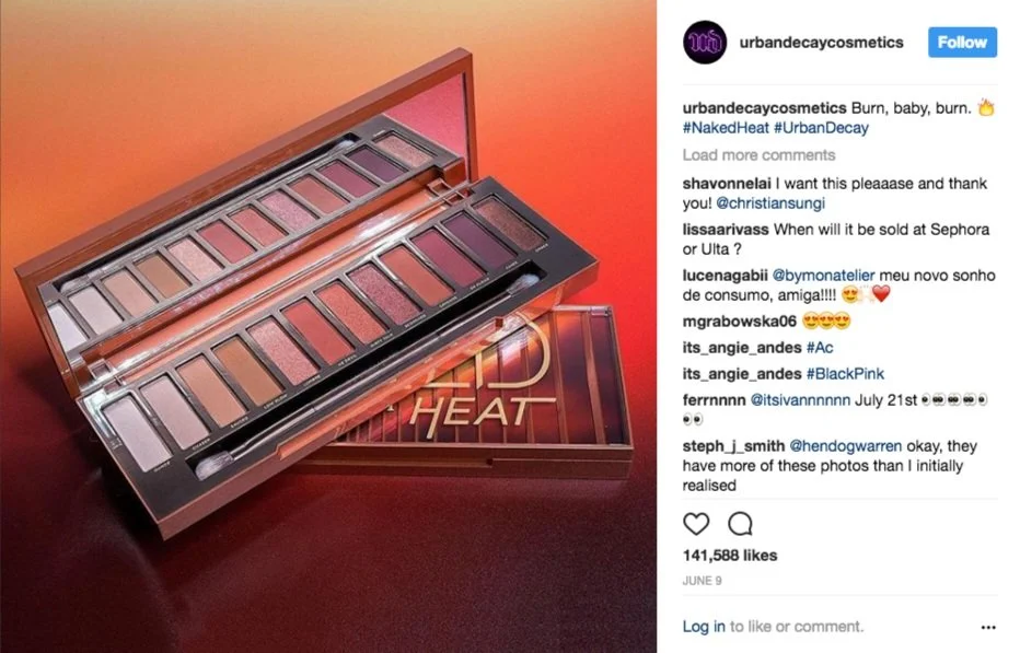 Featuring copy written by me (although I’m not the one to blame for that missing apostrophe!), this post announcing the launch of Naked Heat received more than 330,000 likes and 30,000 comments, earning it a spot in Adweek's article "The 22 Most Engaging Pieces of Brand Content on Social Media in 2017."